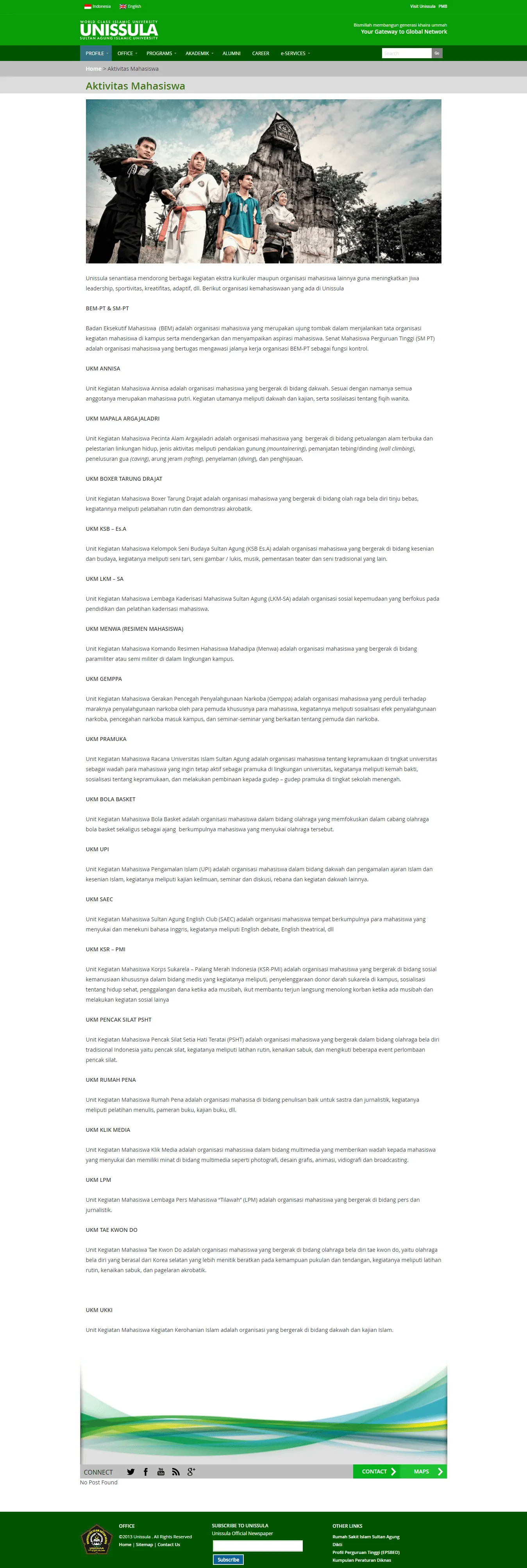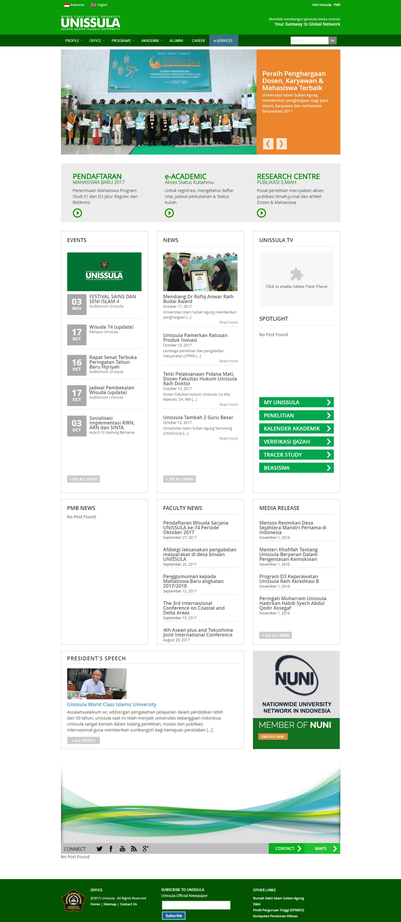 Unissula.ac.id is the official website of the University of Sultan Agung Islamic University which is an information portal related to the university to be distributed to the public and academic community. This Unissula’s website is an answer of Sultan Agung Islamic University to the era of digital communications in Indonesia. By trusting on digital communications technology, information will be more easily accessible without any time and space limitation.